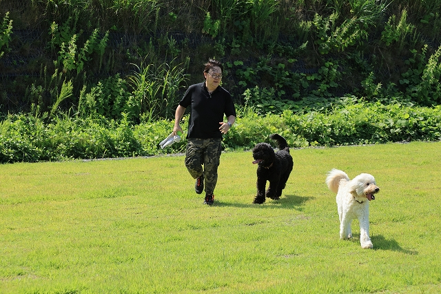 大きなワンちゃんも大満足。走って遊べる広々フィールド。