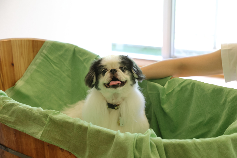 愛犬の体をじんわり温めるやさしい温浴体験です。